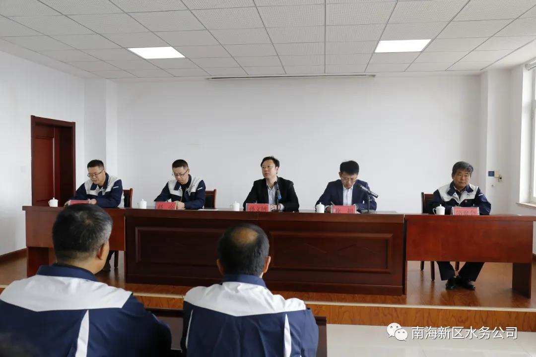 11月8日上午,南海水务有限公司在四楼会议室召开第一次全体职工大会,会议由总经理助理徐超同志主持,党支部书记、总经理孙文博同志发表讲话,总经理助理隋聚会同志、赵亮同志,工会主席王伟同志及全体职工参加。